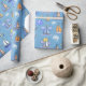 Papel de envoltura de velero azul; perfecto para envolver regalos para cumpleaños de niños y regalos para bebés.