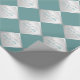 Elegante diseño de patrón de diamante plateado y azul verde azulado con caligrafía de guión inicial. Haga clic en "Personalizar" >> Editar para cambiar el fondo al color de su elección, o para cambiar el color, tipo de letra o estilo de los nombres, iniciales de monograma o texto personalizado. Gire el patrón y el texto para adaptarse a su propio estilo único para envolver regalos masculinos o femeninos. Perfecto para regalos de boda personalizados, compromiso, ducha de novia, despedida de soltera. Cambia fácilmente el texto o crea tu propio mensaje personalizado para cualquier ocasión especial: cumpleaños, bodas, aniversario, graduación, fiesta de soltero, retiro, vacaciones, etc, o agrega un número para celebraciones de hitos.
