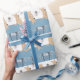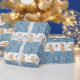 Papel de envoltura de temática canguro adorable con un canguro dulce de mamá y bebé con patrones de flores boho y un esquema de color de país azul y marrón. Perfecto para duchas de bebé, cumpleaños o cualquier ocasión.