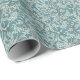 Este papel envolvente presenta un patrón repetido con un diseño floral vibrante y multicolor con elementos intrincados de vid y hoja. La paleta está formada por tonos armoniosos azules y verde azulados en un entorno tranquilo que le da un ambiente refrescante y animado. Las estilizadas flores de miel y follaje crean una composición densa y fluida, que recuerda al movimiento de las Artes y Oficios de finales del siglo XIX.