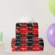 Estrellas blancas brillantes y texto navideño de Feliz Navidad sobre chapa de búfalo rojo y negro. Se puede cambiar el texto.