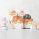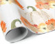 Un papel de envoltura de bonito de calabazas purpurinoso naranjas y blancas sobre blanco