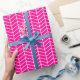 Papel de envolvimiento de Chevron, blanco sobre rosado caliente. Personalizar el color de fondo rosado caliente entre otras opciones.
