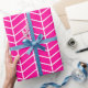 Papel de envolvimiento de Chevron, blanco sobre rosado caliente, tamaño de patrón extra grande. Personalizar el color de fondo rosado caliente entre otras opciones.