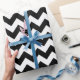 Papel de envoltura diseñado con un patrón de chevron en blanco y negro de gran tamaño. Puede cambiar el negro por otro color.