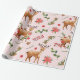 Vacaciones y Navidades de Año Nuevo Los niños envuelven papel con un patrón de bayas silvestres rosadas y flores rosas exuberantes combinadas con ramas de árboles de navidad verde, flores rústicas, ciervos en el fondo rosa pálido es perfecto para sus regalos. Disfruten.
