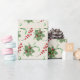 Un diseño de bayas rojas y cintas verdes tradicionalmente huecas para celebrar la belleza de los regalos envueltos.