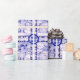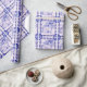 Este diseño de conejo azul y blanco fue pintado a mano originalmente en baldosas de cerámica, para que se puedan ver los espacios de baldosas. Funciona maravillosamente como un diseño de papel envolvente. El diseño monocromo cuenta con un conejo en un entorno nevado, bordeado por más conejillos y copos de nieve.