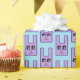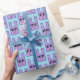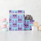 Conjuntos cuadrados morados en un patrón sobre un fondo azul claro.