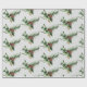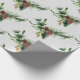El papel de envolvimiento festivo y de invierno para el Holidays presenta un patrón acuarela de ramas siempre verdes con pinecones sobre fondo gris claro.