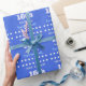 Este sencillo y personalizado diseño de papel de envoltura de cumpleaños incluye un mensaje como "¡Ten un gran cumpleaños, FirstName!", donde el nombre y el número de cumpleaños pueden ser personalizados. También presenta formas de diamante decorativas. El fondo es azul real. El papel envuelto como este podría ser usado cuando se le dan regalos a alguien para celebrar su cumpleaños. [~Z0000243]