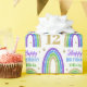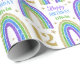 Envuelve tus regalos en papel glamuroso para tu brillante cumpleaños. Arcoiris purpurina dorado, verde, azul y púrpura sobre papel envuelto de cumpleaños blanco. Personalice el nombre y la edad de un personalizado que cumple 12 años.