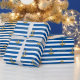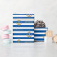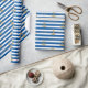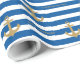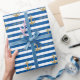 Personalizar este elegante y moderno documento de envolvimiento de cumpleaños feliz Náutica, diseño de rayas azules y blancas con anclas, establecido como una plantilla para una fácil personalización. Reemplace el nombre de ejemplo por su nombre o su apellido.