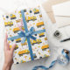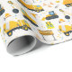 Resuma la diversión con este papel de envoltura de cumpleaños con temática de construcción que presenta un patrón repetido de camiones volquete amarillos, excavadores, conos y gorras duros. Perfecto para los cumpleaños de los niños, este divertido envoltorio de regalo le da un toque final cohesivo a la celebración temática de su camión. Ideal para regalos, fiestas de mesa o proyectos artesanales, este artículo combina todo con colores y encanto audaces.