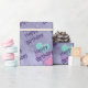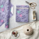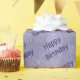 Patrón de mancha morada con texto de feliz cumpleaños y globos cardíacos. El texto se puede editar.