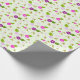 Este papel de envolvimiento floral de bonito tiene un fondo verde pálido y flores de primavera de bonito, mariposas y libélulas volando por ahí. Perfecto para el papel de envoltura de cumpleaños.
