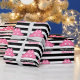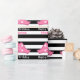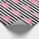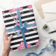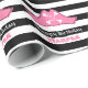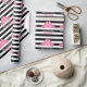 Papel envuelto con un diseño de rayas negras con el ilustracion de un gorra pirata rosado. Personalice el texto.