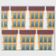 Casa de dos plantas con muchas ventanas. Este diseño se ve realmente efectivo en este papel de ajuste