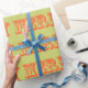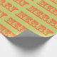 La palabra "MERRY" adorna este envoltorio de regalo de color único con un tipo de letra audaz y de arlequín.