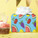 La fruta mixta forma este divertido papel de envoltura. Personalizable para que pueda agregar su propio texto y cambiar el color de fondo. ¡Este diseño nos lleva unas sonrisas!