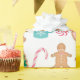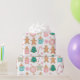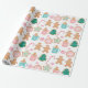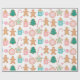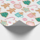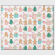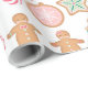 Este papel de envoltura presenta un patrón de galletas de jengibre decoradas sobre un fondo blanco brillante.