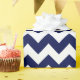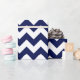 Papel de envoltura diseñado con un patrón de chevron azul marino y blanco de gran tamaño. Puede cambiar el color azul marino por otro.
