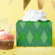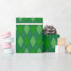 Papel de envoltura diseñado con un patrón de argyle de tonos verdes de gran tamaño.