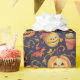 Papel de envolvimiento de Halloween - Diseño No. 2 : Un diseño inspirado en calabaza y cactus sobre un fondo azul oscuro. Con telarañas y viñas que le dan un toque final al diseño.