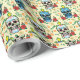 Celebra el espíritu del Día de los Muertos con nuestro vibrante papel de envoltura de Halloween que presenta un patrón impecable y festivo. Calaveras de azúcar decoradas en vivos tonos azules y coloridos alternan con rosas rojas exuberantes, colocadas sobre un fondo amarillo pálido cálido. Flores amarillas y follaje verde salpicadas de manera deslumbrante añaden un toque caprichoso, haciendo de este papel de envoltorio perfecto para las celebraciones de Halloween y Día de los Muertos. Luminoso, alegre y de temática única, ideal para regalar con un espíritu espiritual.