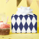 Papel de envoltura diseñado con un patrón de arlequín azul marino y blanco de gran tamaño. Puede cambiar el blanco por otro color de forma sencilla.