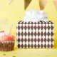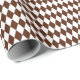 Papel de envoltura diseñado con un patrón de arlequín marrón y blanco de tamaño medio. Puede cambiar el blanco por otro color de forma sencilla.