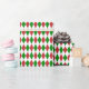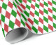 Papel de envoltura diseñado con un arlequín rojo oscuro, verde y blanco. Personalizar el color de fondo blanco entre otras opciones.