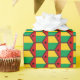 Una bandera hexagonal en forma de Guinea-Bissau forma la base del diseño teselado en este papel de envoltura. Esta sería la manera perfecta de envolver un regalo para o de alguien con conexión guineana.