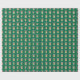 Este patrón presenta tazas de macchiato de caramelo helado y granos de café en un fondo verde.
