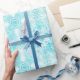 Manténgalo fresco y listo con el divertido y helado papel de envoltura con temática invernal con copos de nieve y diseño de arte radial natural.
