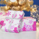 Caliente rosa, Fuchsia y Morado Árboles de invierno de Snowman esparcen papel para envolver regalos de niñas. Este papel de envoltura de bonito tiene hombres de nieve, copos de nieve y árboles de Navidad con estrellas. Las palabras Felices Fiestas, Saludos de Temporada y Feliz Navidad también están en el papel. Ideal para regalos de vacaciones.