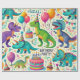 ¡Haga especial cualquier celebración de cumpleaños con este vibrante Papel de envolvimiento de la fiesta de cumpleaños de los dinosaurios! Con juguetones dinosaurios personalizados como T-Rex, Triceratops, Brachiosaurus y Velociraptors, todos vestidos con gorras fiestas festivos y rodeados de globos, pasteles, confetti y serpenteadores.