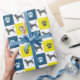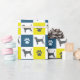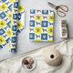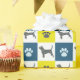 Patrón abstracto de líneas de cuadrícula amarillas, azules y negras de la silueta de perro beagle. Las huellas de la pata alternando con la silueta del perro hacen un patrón fresco. Los regalos de beagle para los amantes del perro se verán muy bien envueltos en este fresco papel de envoltura.