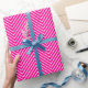 Papel de envolvimiento de la línea Chevron, blanco sobre rosado caliente, tamaño de patrón extra grande. Personalizar el color de fondo rosado caliente entre otras opciones.