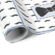Envoltura de regalo azul y negro y blanco con bigotes y bolas graciosas y lindas.
