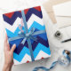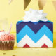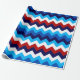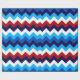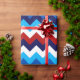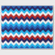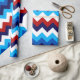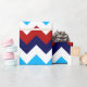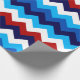 Un rollo de papel de envoltura con un diseño de patrón colorido y lindo de chevrones rojos, blancos y azules.