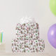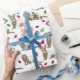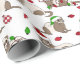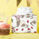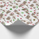 Los dulces hurones Navidades en sombreros de Santa con latas de caramelo y luces de cuerdas sobre un fondo blanco con ornamentos dispersos envolviendo papel.
