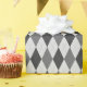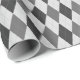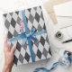 Papel de envolvimiento diseñado con un patrón de argyle de tonos grises de gran tamaño.