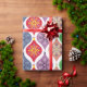 Ornamentos de Navidad retro Papel de envolvimiento de vacaciones con colores retro silenciosos de azul, verde, rojo, morado y malva. Papel de envolver único para todos los regalos de tus Navidades.