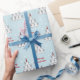 Este giftwrap presenta un lindo ilustracion de gatos parados en un árbol de Navidad o en forma de pirámide sobre un fondo azul claro con el dicho "Navidades Meowy". ¡Un papel único y dulce para los amantes de los gatos!