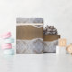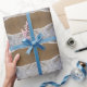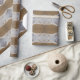 Papel envuelto cubierto con una imagen de agua del océano que se va a la playa, ambientada en un patrón abstracto de espejo.