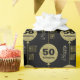 Los globos purpurinas simulados de oro con cuerdas hacen un patrón continuo a partir de los 50 años y el nombre de la persona de cumpleaños. "Cumpleaños feliz" abraza la cuerda del globo sobre un fondo negro. El papel de envoltura perfecto para cualquier niño glamoroso de 50 años.