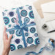 Papel de envoltura de ojos malignos griego moderno ilustrado a mano en azul y blanco mediterráneo.