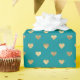 Este papel de envoltura presenta un lindo patrón de corazones de Relieve metalizado de oro falso en el fondo verde azulado.