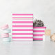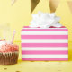 Papel de envoltura diseñado con un patrón rayado rosa y blanco en tamaño mediano. Puede cambiar el color rosado por otro.